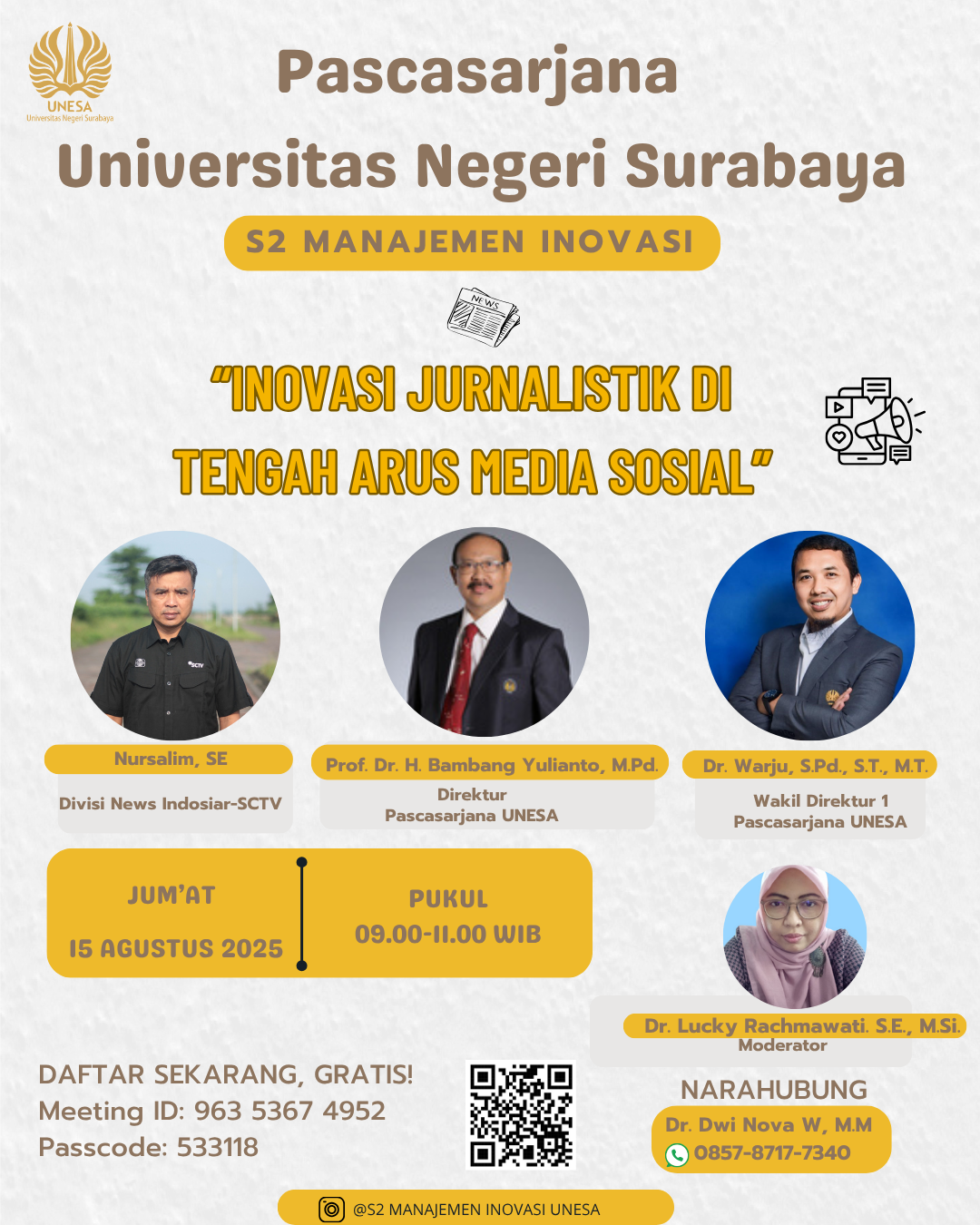 🎙️ Inovasi Jurnalistik di Tengah Arus Media Sosial📌 Bagaimana jurnalis bisa tetap relevan di era informasi super cepat?📌 Strategi apa yang membuat berita tetap dipercaya di tengah banjir konten?